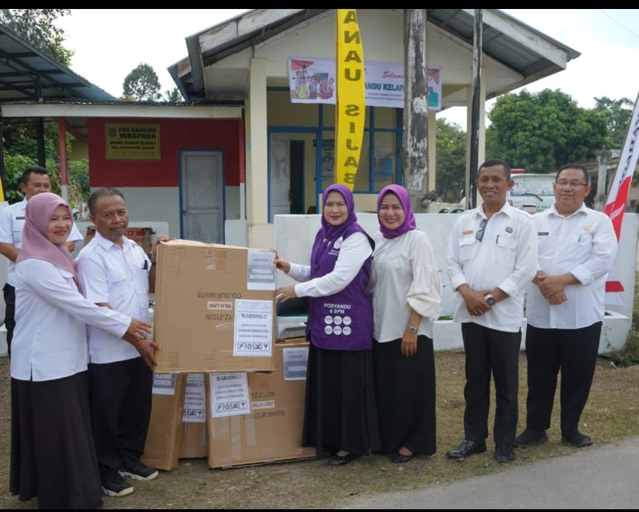 Ketua Tim Pembina (TP) Posyandu Kabupaten Asahan menyerahkan bantuan 5 unit meja dan 10 unit kursi kepada Saung Posyandu Cemara III Desa Rahuning, Kecamatan Rahuning dan Posyandu Sakura Desa Sengon Sari, serta Posyandu Kelapa Gading Desa Sijabut, Kecamatan Air Batu, Rabu (07/01/2026).