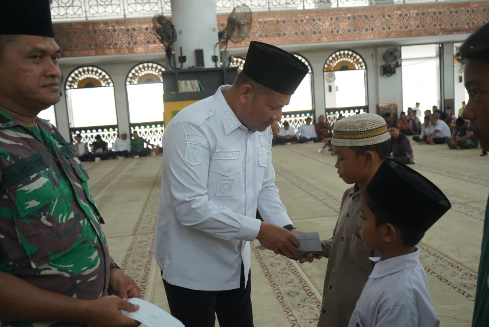 Wakil Bupati Asahan Rianto menyerahkan santunan kepada anak yatim.(Foto : Istimewa)