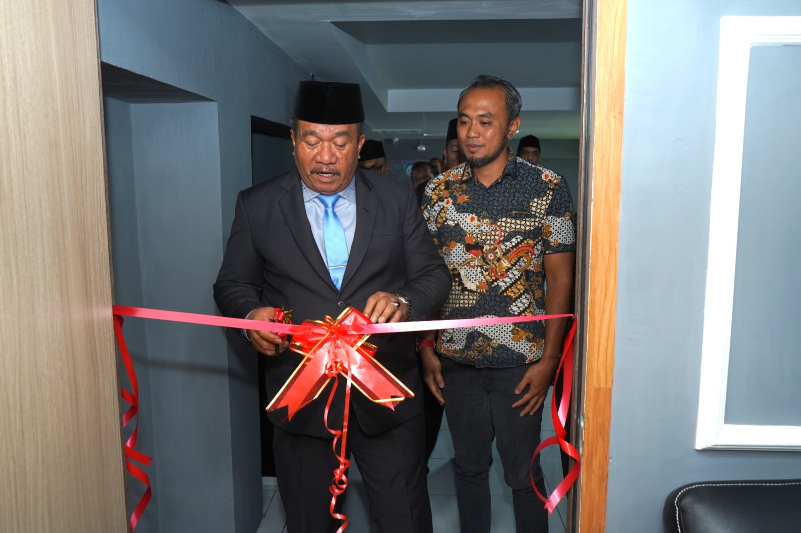 Bupati Asahan Taufik Zainal Abidin memotong pita peresmian Studio Podcast “Asahan Bicara”. (Foto : Istimewa)