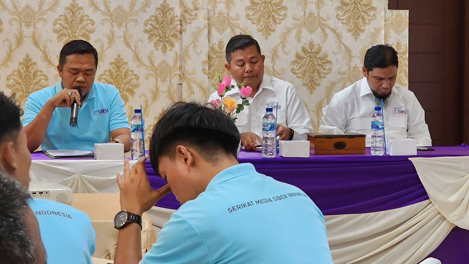 Pengurus Serikat Media Siber Indonesia (SMSI) Kabupaten Batu Bara, Sumatera Utara, menggelar pelatihan media siber mengusung tema menjadikan media komersil yang profesional di Aula Singapore Land, Kecamatan Sei Balai, Batu Bara, Jumat (3/5/2024).