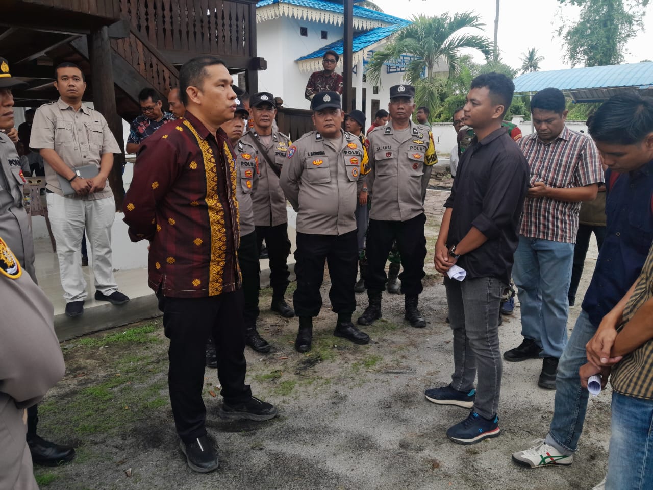 Dengan pengawalan ketat aparat Polres Batu Bara,massa MMP SU menyampaikan pernyataan sikap permasalahan proyek infrakstruktur.