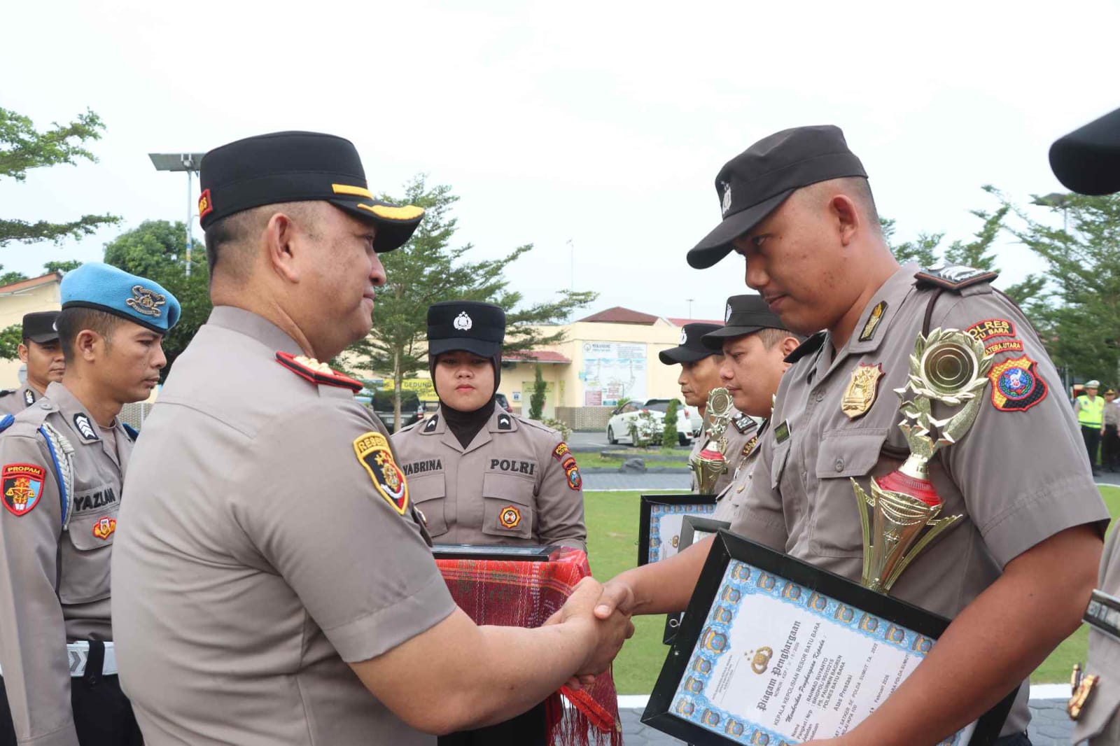 BATUBARA – (Membaranews.com) – Kapolres Batu Bara Doly Nelson H.H. Nainggolan memberikan penghargaan kepada 15 personel berprestasi dalam upacara di lapangan Mapolres Batu Bara, Kecamatan Lima Puluh, Senin (2/3/2026).