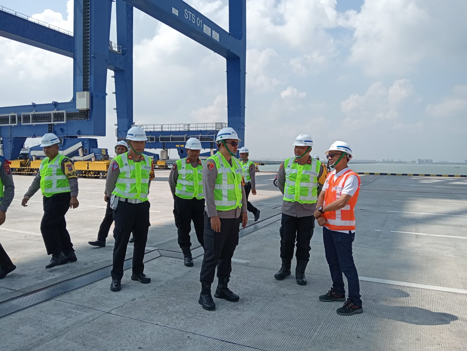 Kapolres Batu Bara AKBP Taufiq Hidayat Thayeb meninjau pelabuhan peti kemas PT Pelindo Kuala Tanjung Kecamatan Sei Suka Kabupaten Batu Bara Kamis, (8/2 2024).