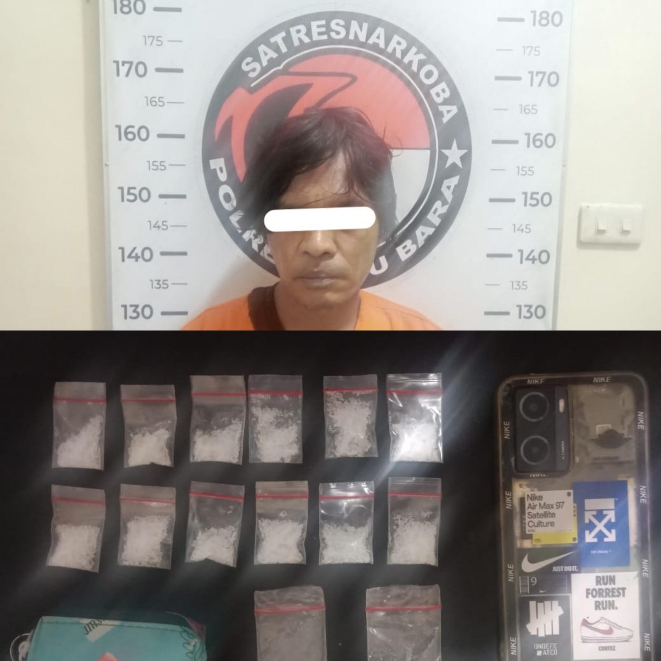 BATUBARA -(Membarnews.com) – Satres Narkoba Polres Batu Bara menangkap seorang pria berinisial I (47), warga Desa Pematang, Medang Deras, karena kedapatan membawa narkotika jenis sabu seberat 13,57 gram.