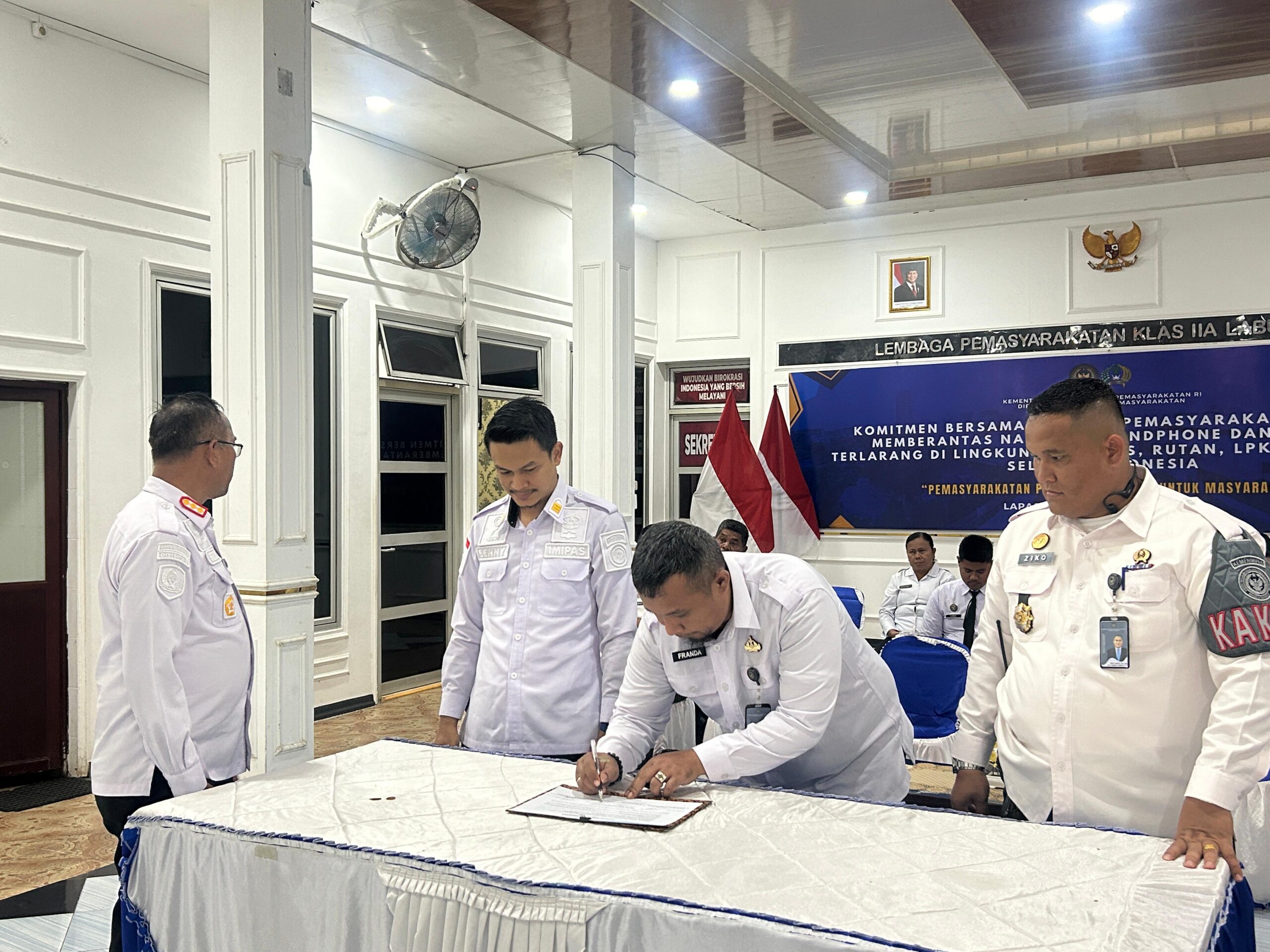 Tegaskan Komitmen Zero Halinar, Kalapas Labuhan Ruku Tandatangani Komitmen Bersama Petugas