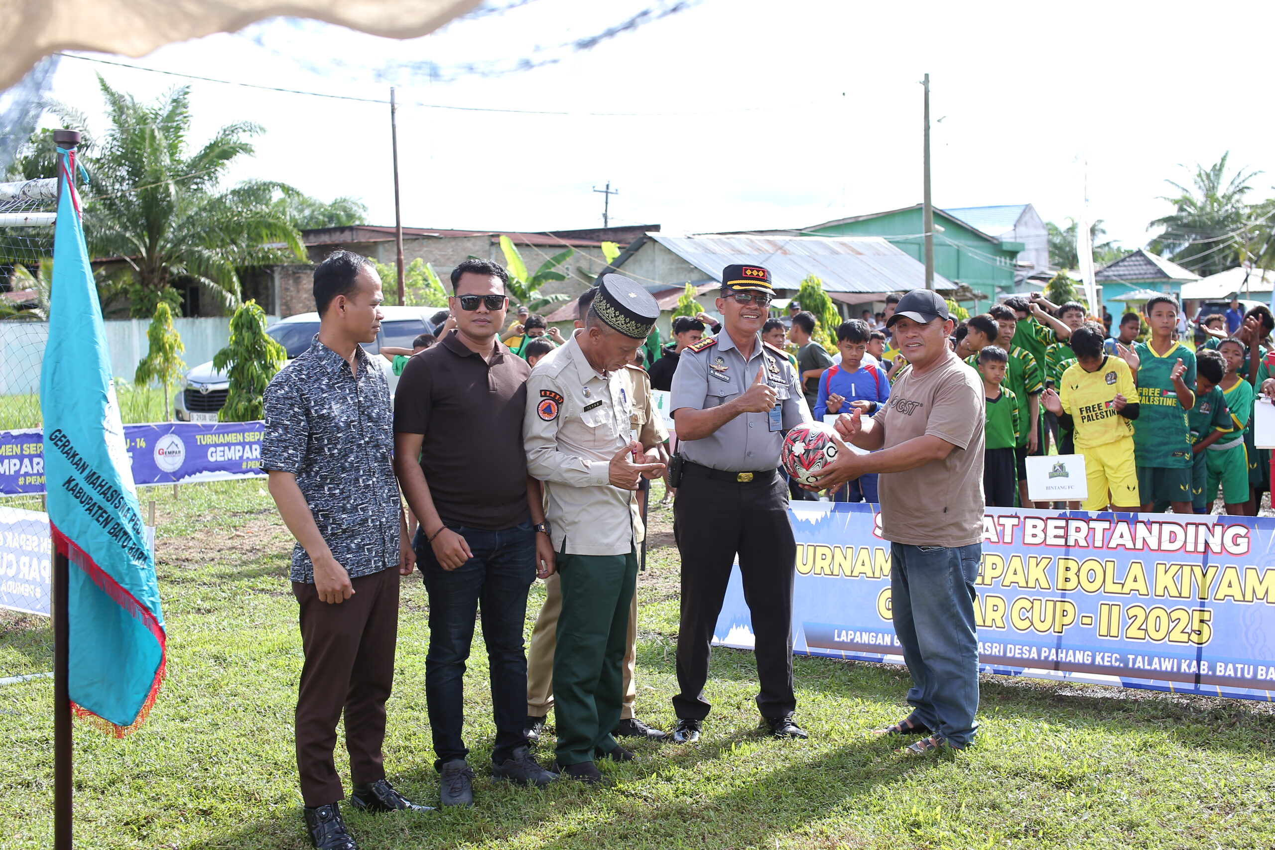 BATUBARA- (Membaranews.com) Suasana Lapangan Perumahan Gria Sultan, Desa Pahang, Kecamatan Talawi, Kabupaten Batu Bara, tampak meriah pada pembukaan turnamen sepak bola Kiyam U-14 Gempar Cup II, Senin (15/9/2025).