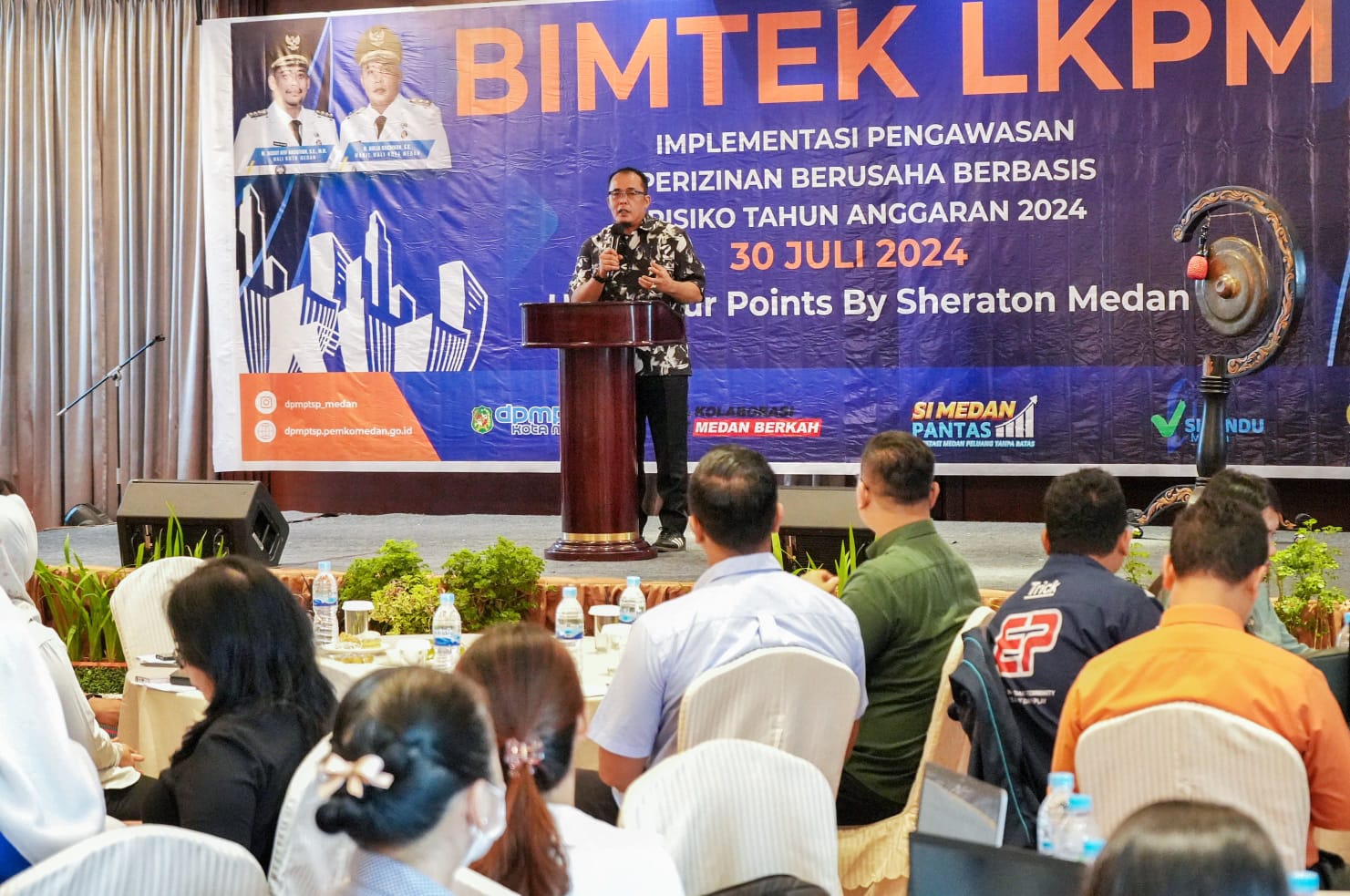 Hal tersebut disampaikan Wakil Wali Kota Medan H. Aulia Rachman saat membuka Bimbingan Teknis LKPM “Implementasi Pengawasan Perizinan Berusaha Berbasis Risiko Tahun Anggaran 2024” digelar Dinas Penanaman Modal dan Pelayanan Terpadu Satu Pintu (DPMPTSP) Kota Medan di Hotel Four Point, Jalan Gatot Subroto Medan, Selasa (30/7/2024).