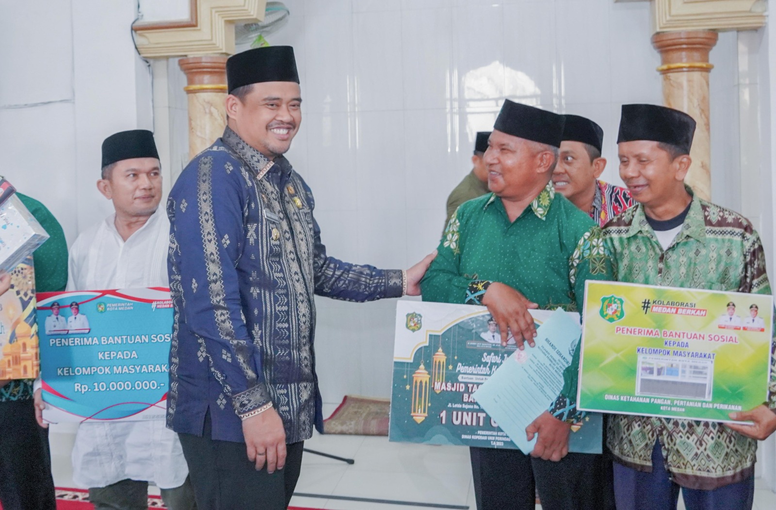 Saat Safari Jum’at di Masjid Taqwa Muhammadiyah Bandar Selamat Jalan Letda Sujono Medan, Jum’at (3/11/2023) Bobby menyerahkan bantuan renovasi masjid Rp.50 juta, bantuan sosial Rp. 10 juta, Akte Pendirian Koperasi Masjid, gerobak usaha, satu unit steling usaha, satu set tenis meja, satu unit rak beserta buku barcode e-book.