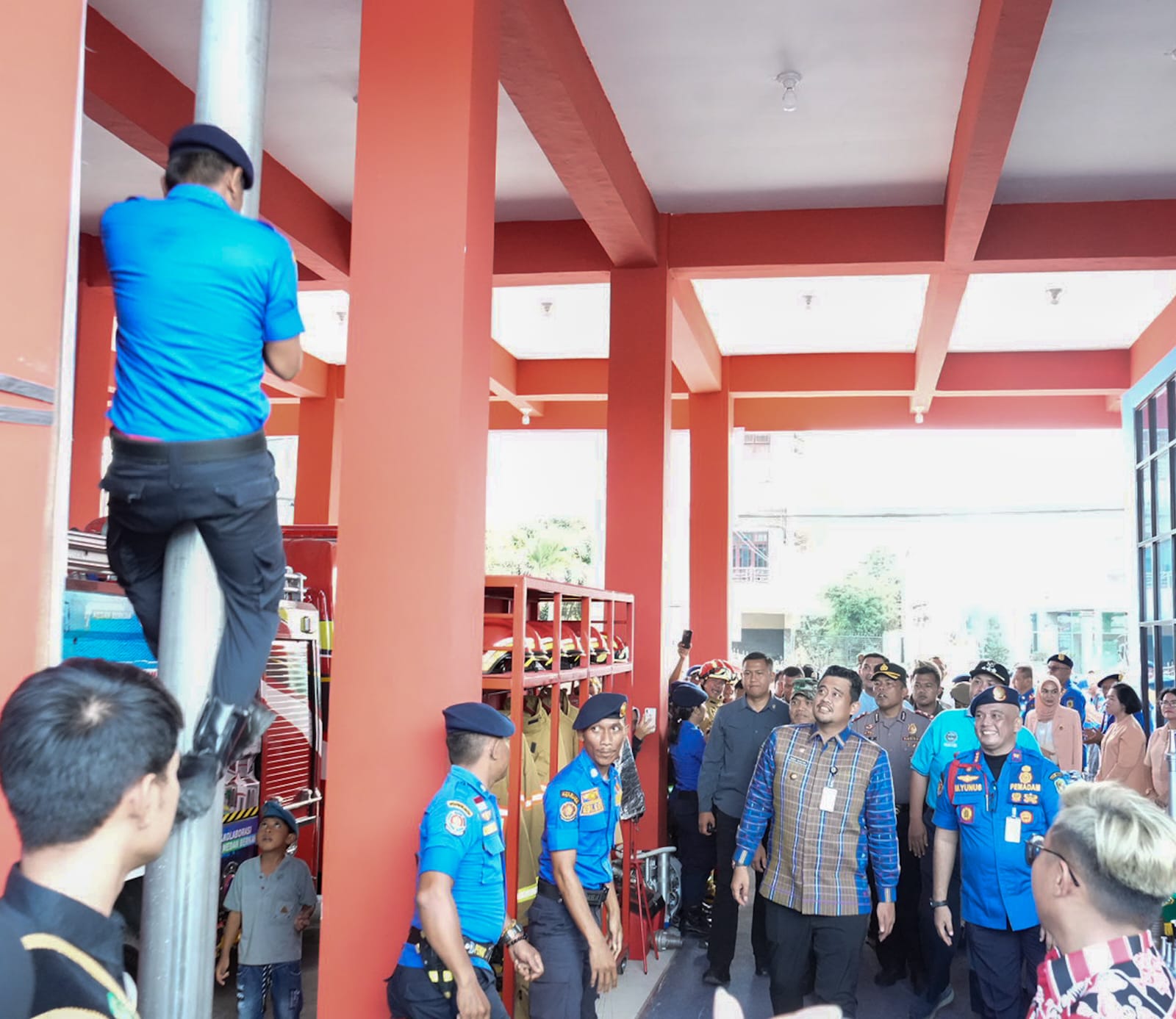 Bobby Nasution mengecek fasilitas UPT Pemadam Kebakaran Kota Medan yang diresmikan.(Foto : Kominfomdn)