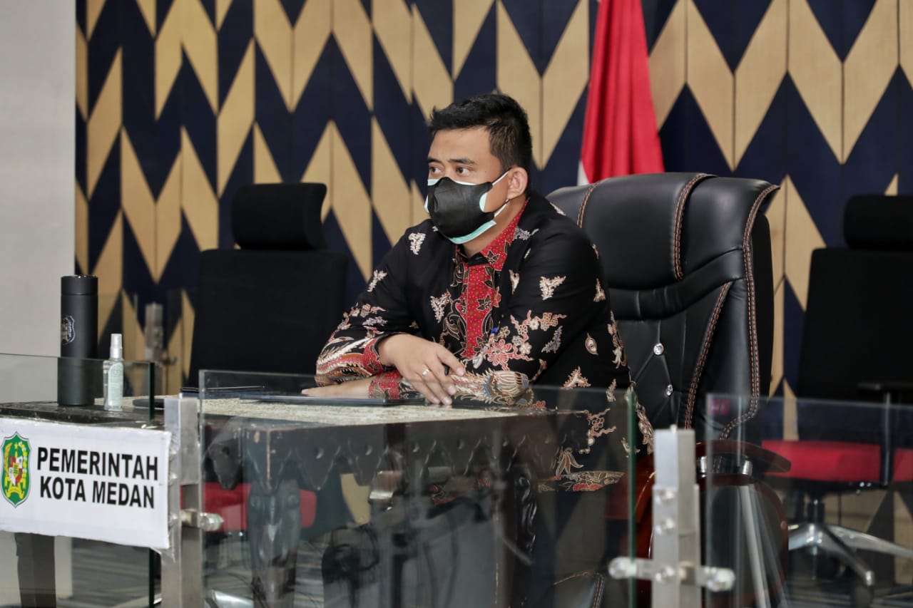 Wali Kota Medan Bobby Nasution menyaksikan peluncuran Sistem Online Single Submission (OSS) Berbasis Risiko secara virtual di ruang Command Center Kantor Wali Kota, Senin (9/8/2021).