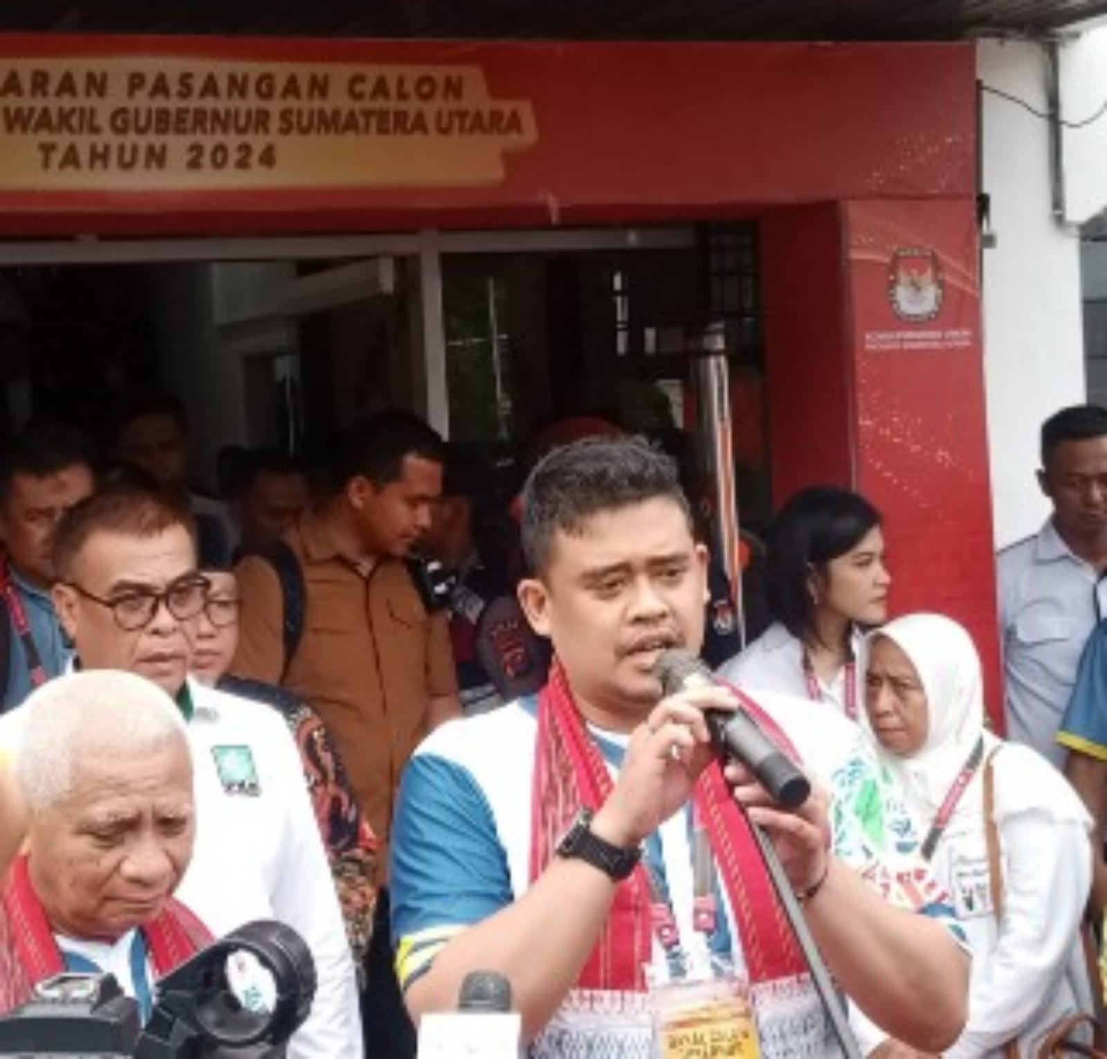 Bakal calon Gubernur dan Wakil Gubernur Sumut Bobby Nasution dan Surya mendaftar ke KPU Sumut Jl Perintis Kemerdekaan Medan Rabu (29/8/2024)