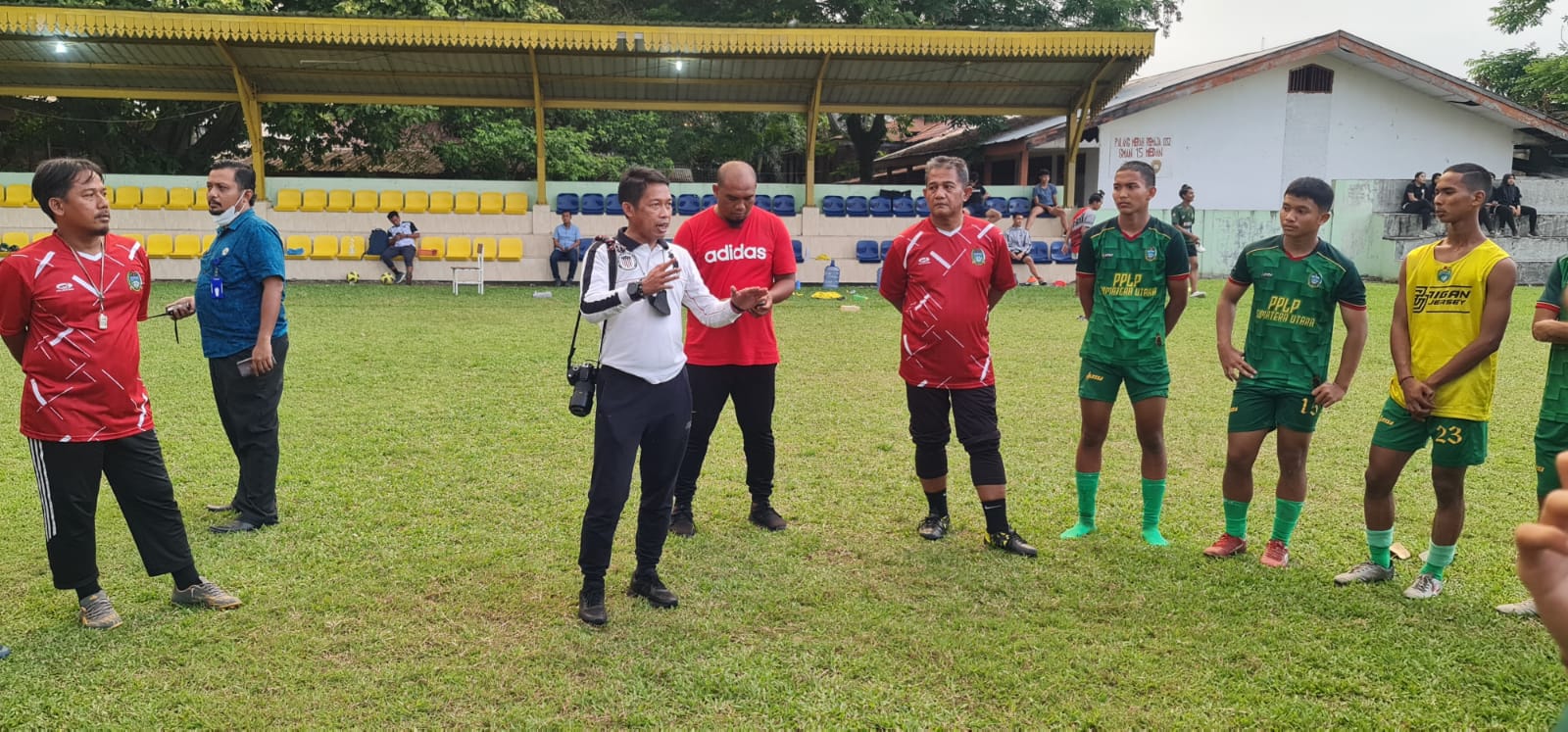 Kepala UPT PPLP Sumut H Apri Sugiarto,SE sedang memberikan pengarahan kepada pelatih dan atlet sepakbola PPLP Sumut.