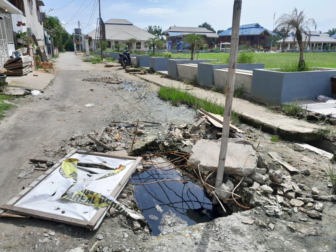 Lobang menganga sedalam satu meter sangat membahayakan bagi pengguna jalan baik warga yang mau berurusan kevkantor Camat maupun para ASN sering terancam jiwanya akibat lobang yang menganga karena amblasnya gorong gorong dibawah badan jalan.Setiap hari nyawa warga terancam saat melewati jalan berlubang tersebut.