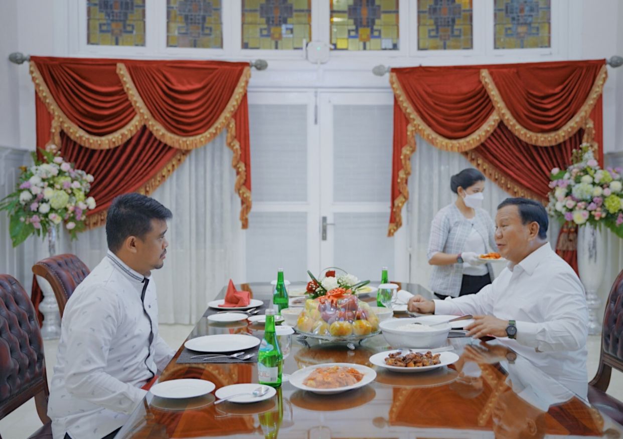 Wali Kota Medan Bobby Nasution menjamu makan malam Menhan Prabowo Subianto di rumah Dinas Wali Kota, Jalan Sudirman, Kamis (26/1/2023).