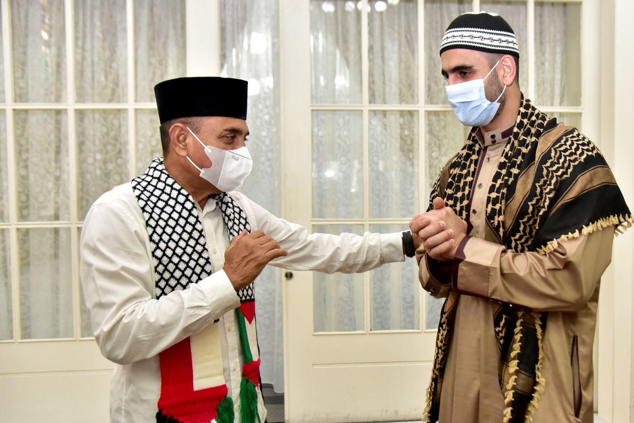 Gubernur Sumatera Utara Edy Rahmayadi menerima kunjungan Syech Mahmoud Mohammed Abd Ell-al, Imam Masjid Palestina di Rumah Dinas Gubernur Sumut Jalan Jenderal Sudirman , Jumat (21/5/2021).