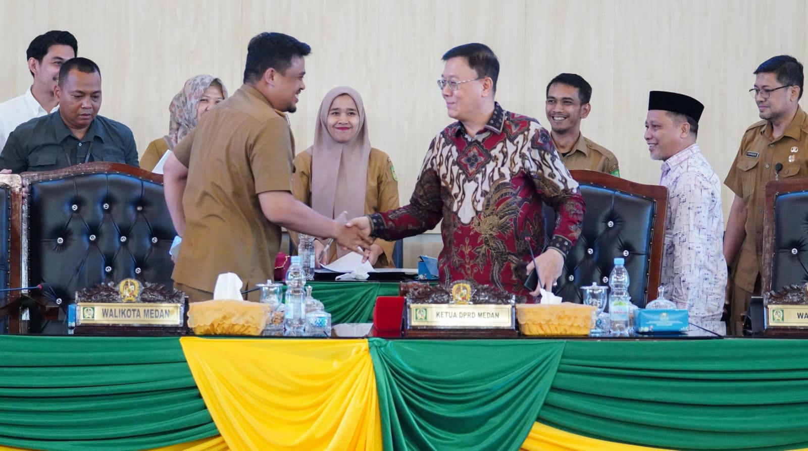 Wali Kota Bobby Nasution menyalami Ketua DPRD Medan Hasyim.(Foto : Kominfomdn )