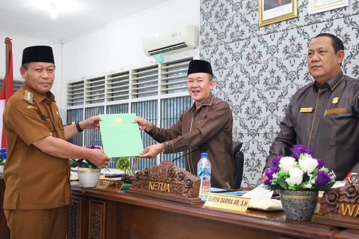 Ketua DPRD Tengku Eswin menyampaikan SK DPRD atas Rekomendasi LKPJ Wali Kota Tanjungbalai TA 2022 dan mensahkan 2 Ranperda menjadi Perda dalam Rapat Paripurna DPRD,Senin (05/06/2023).