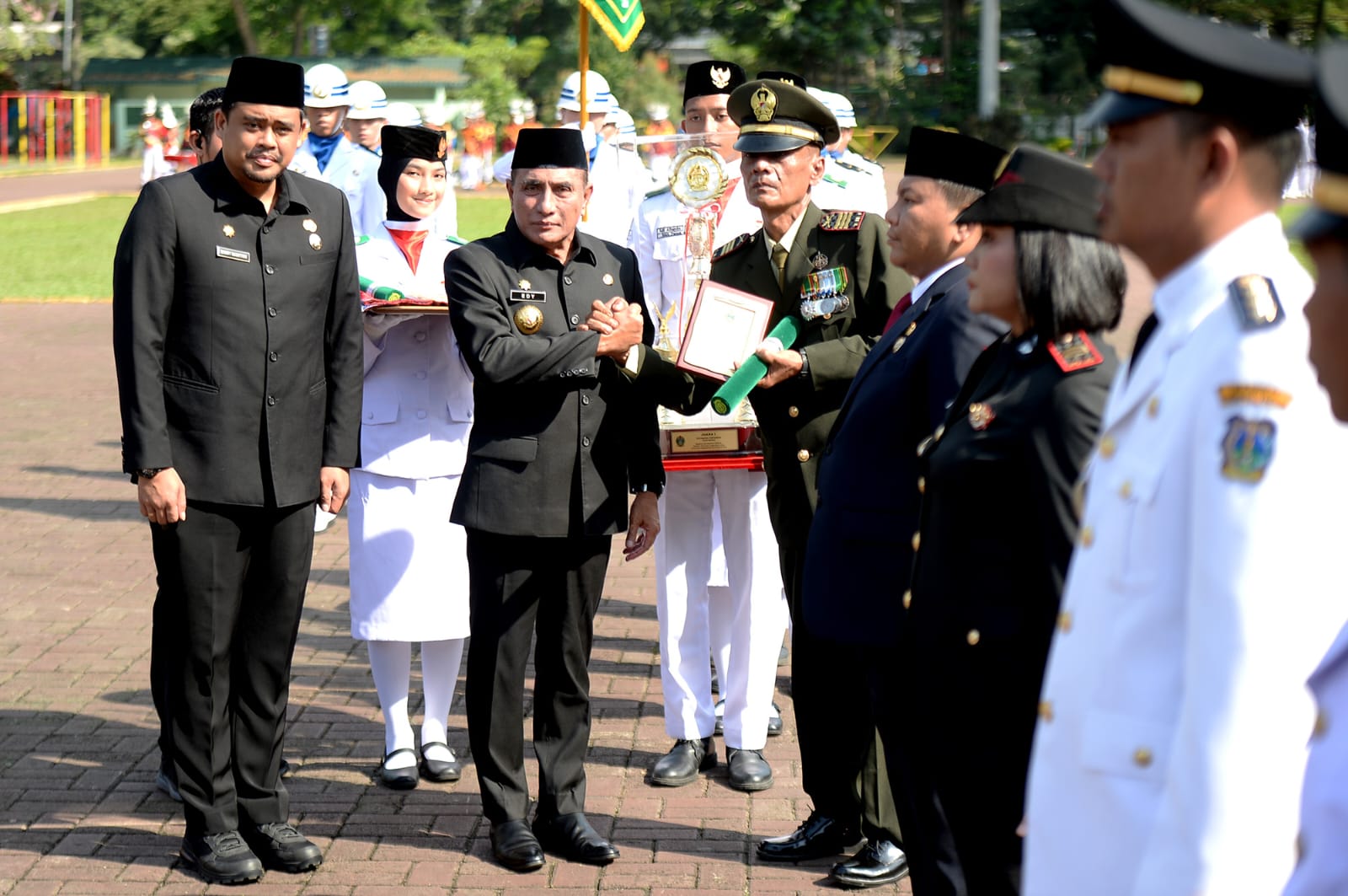 Penghargaan diserahkan Gubernur Edy Rahmayadi pada Upacara Penyerahan Tunggul Kecamatan Terbaik Tingkat Provinsi Kategori Kota Tahun 2022 di Lapangan Benteng Medan, Senin (30/1/2023).Hadir Walikota Medan Bobby Nasution, Ketua TP PKK Sumut Nawal Lubis, Forkopimda, OPD dan masyarakat.