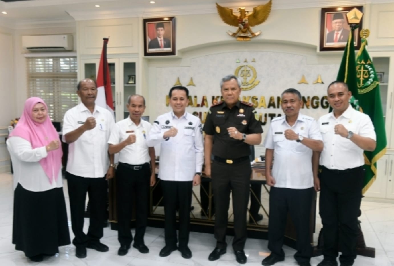 Pj.Gubernur Sumut Agus Fatoni bersilaturrahmi dengan Kajati Sumut Idianto,SH,MH guna sukses PON XXI di wilayah Sumut.(Foto : Istimewa)