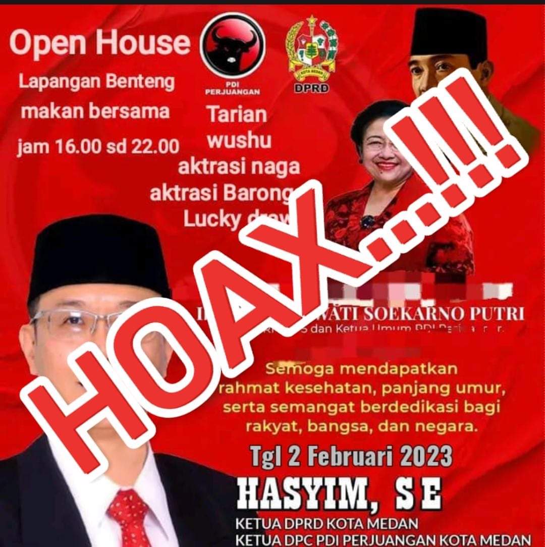 Hasyim SE selaku Ketua DPRD Medan yang juga Ketua DPC PDI Perjuangan Kota Medan menegaskan, tidak ada menggelar Open House Imlek sebagaimana disebutkan dalam Sticker/Banner yang tersebar di media sosial.