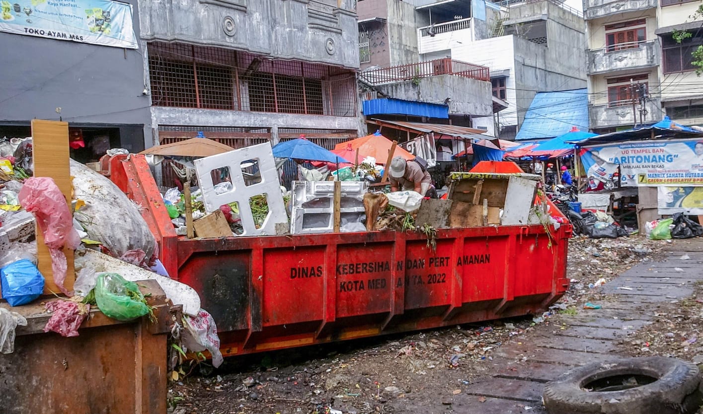Pasar Peringgan Medan dibersihkan dari sampah.(Foto : Kominfomdn)