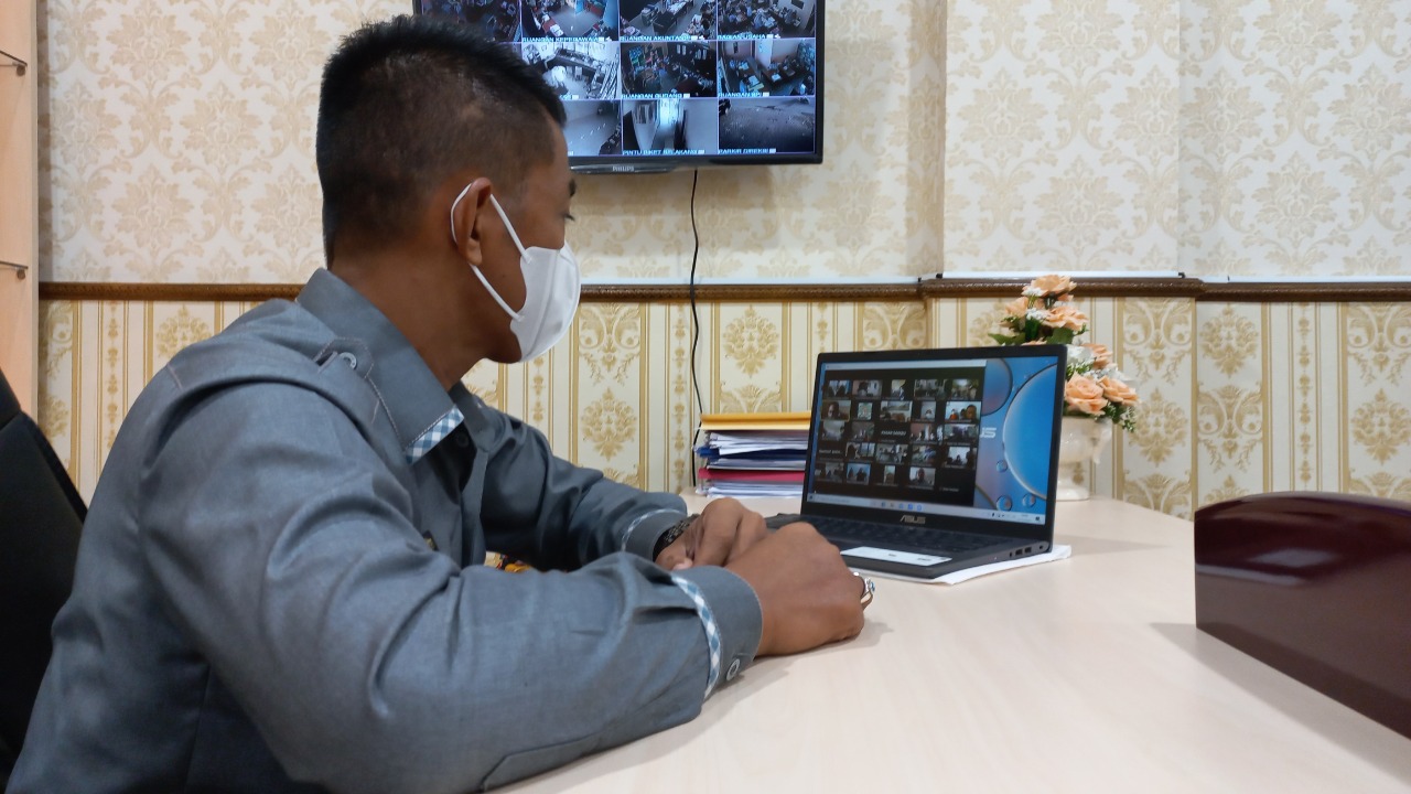 Dirut PD Pasar Kota Medan Suwarno saat zoom meeteng di kantornya.(Foto : PUD Pasar)