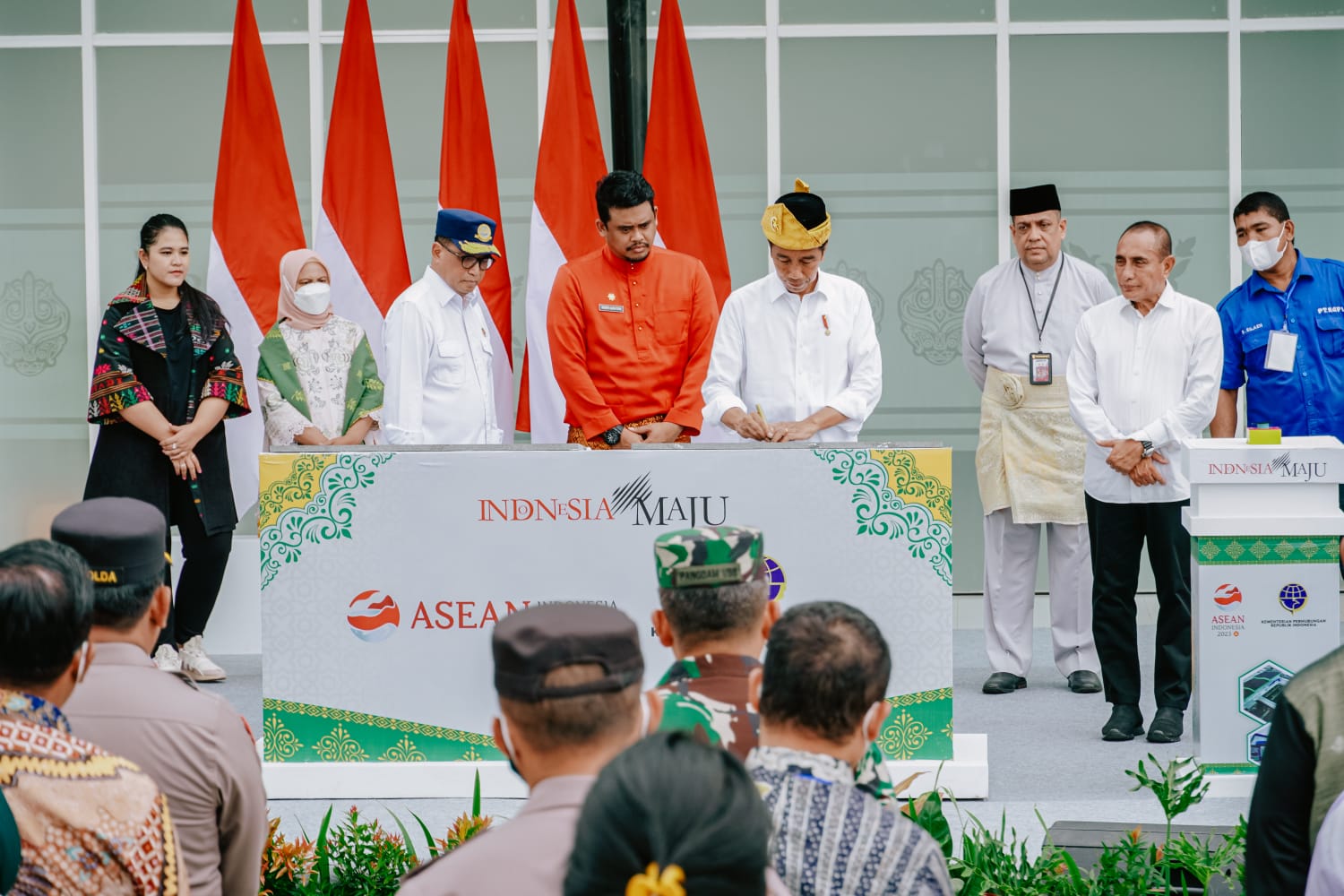 Presiden didampingi Menhub Budi Karya Sumadi,Gubernur Sumut Edy Rahmayadi,Wali Kota Medan Bobby Nasution.