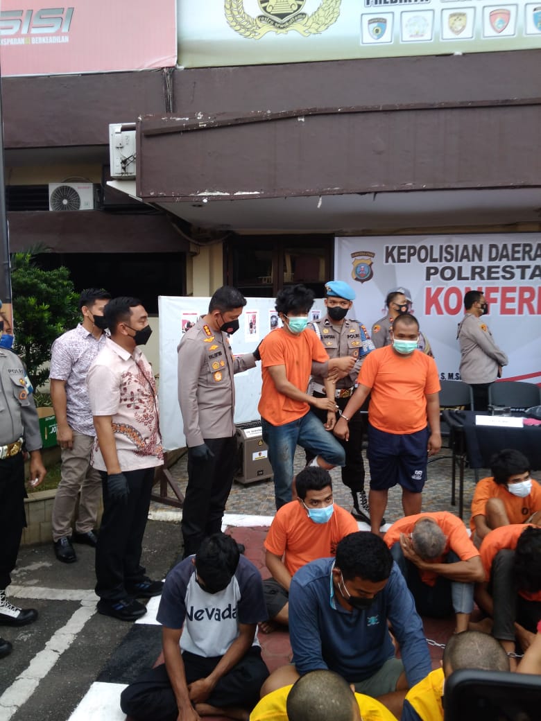 “Jangan ada lagi teror dilakukan oleh komplotan pelaku kejahatan di jalanan.Anggota harus mampu mengungkap kasus dengan cepat, ” kata Kombes Pol Valentino Alfa Tatareda dalam konferensi pers pengungkapan kasus curat, curas, curanmor (3C) dan narkoba dengan 42 tersangka hasil pengungkapan Polsek jajaran Polrestabes Medan, Jumat sore (18/2/2022).