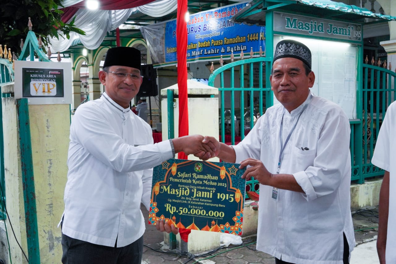 Sekda Wiriya menyerahkan bantuan hibah dari Pemko Medan sebesar Rp.50 juta untuk pembangunan Masjid Jami’ 1915 , bantuan paket Ramadhan dan sembako sebesar Rp.10 juta.