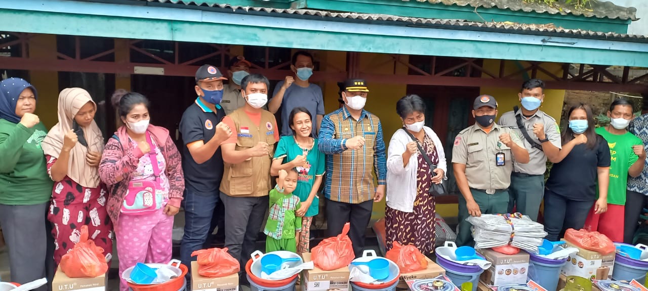 Kepala Pelaksana BPBD Medan Muhammad Husni menyerahkan bantuan ke warga , Jumat (25/2/2022) untuk meringankan beban korban kebakaran.