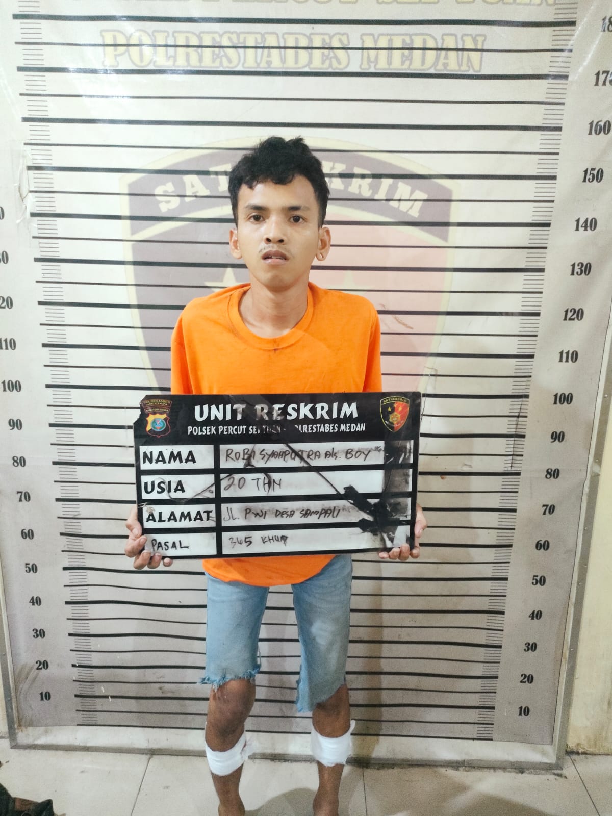 Setelah dilakukan pengembangan untuk mencari pelaku an. Ananda alias Blek, pelaku Robi alias Boy berusaha menyerang petugas dan hendak melarikan diri sehingga petugas memberikan tembakan tegas dan terukur pada betis sebelah kanan. Setelah itu pelaku dibawa ke RS. Bhayangkara untuk diobati dan kemudian membawa pelaku ke Polsek Medan Tembung untuk proses lebih lanjut.