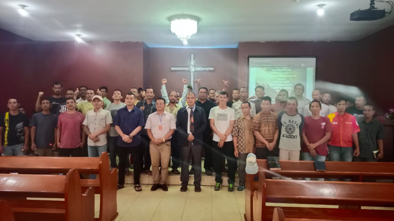 Kegiatan Ibadah dilaksanakan bagi warga binaan pemasyarakatan (WBP) Kristiani di Gereja Lapas Narkotika Kelas IIA Pematangsiantar dipandu om Rohaniawan Pdt. Andi Sastra Ginting BKAG (Badan Kerjasama Antar Gereja) Kabupaten Karo,Minggu (28/07/2024).