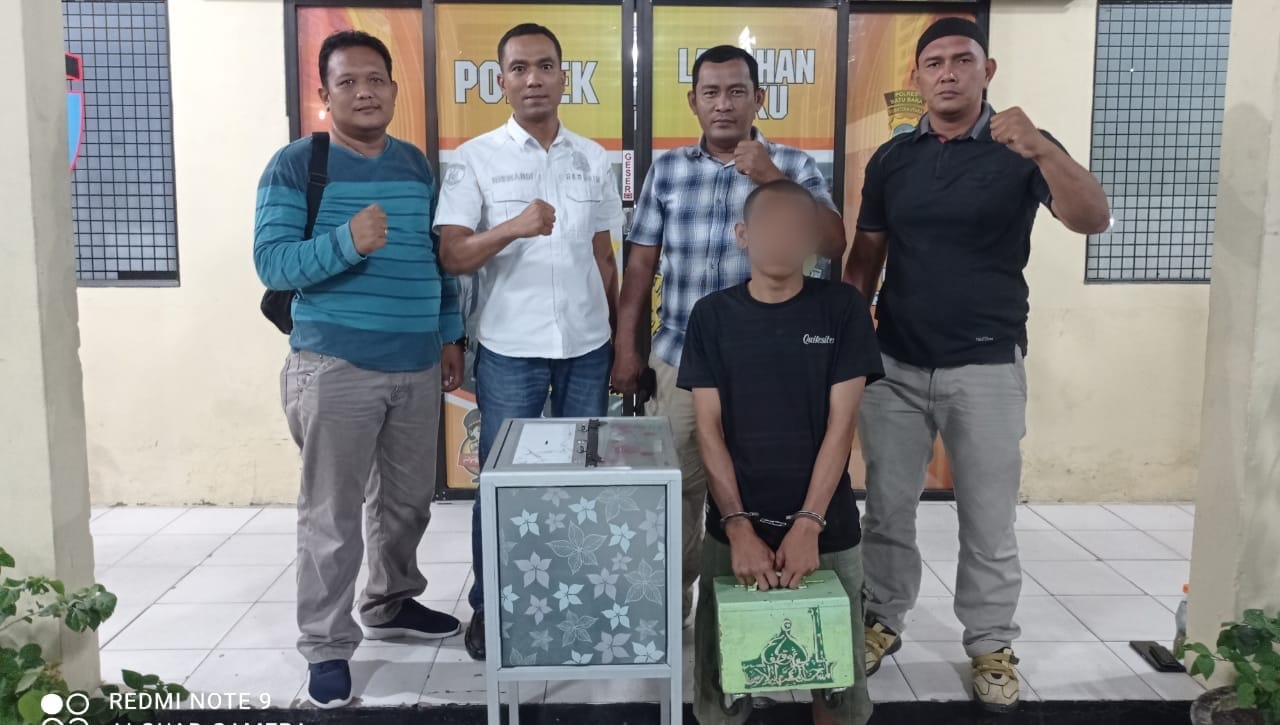 Tua uga resedivis kasus pencurian dengan pemberatan (curat) diamankan karena kasus pencurian kotak infaq di Masjid Al-Mukarram Desa Lima Laras Kecamatan Nibung Hangus.