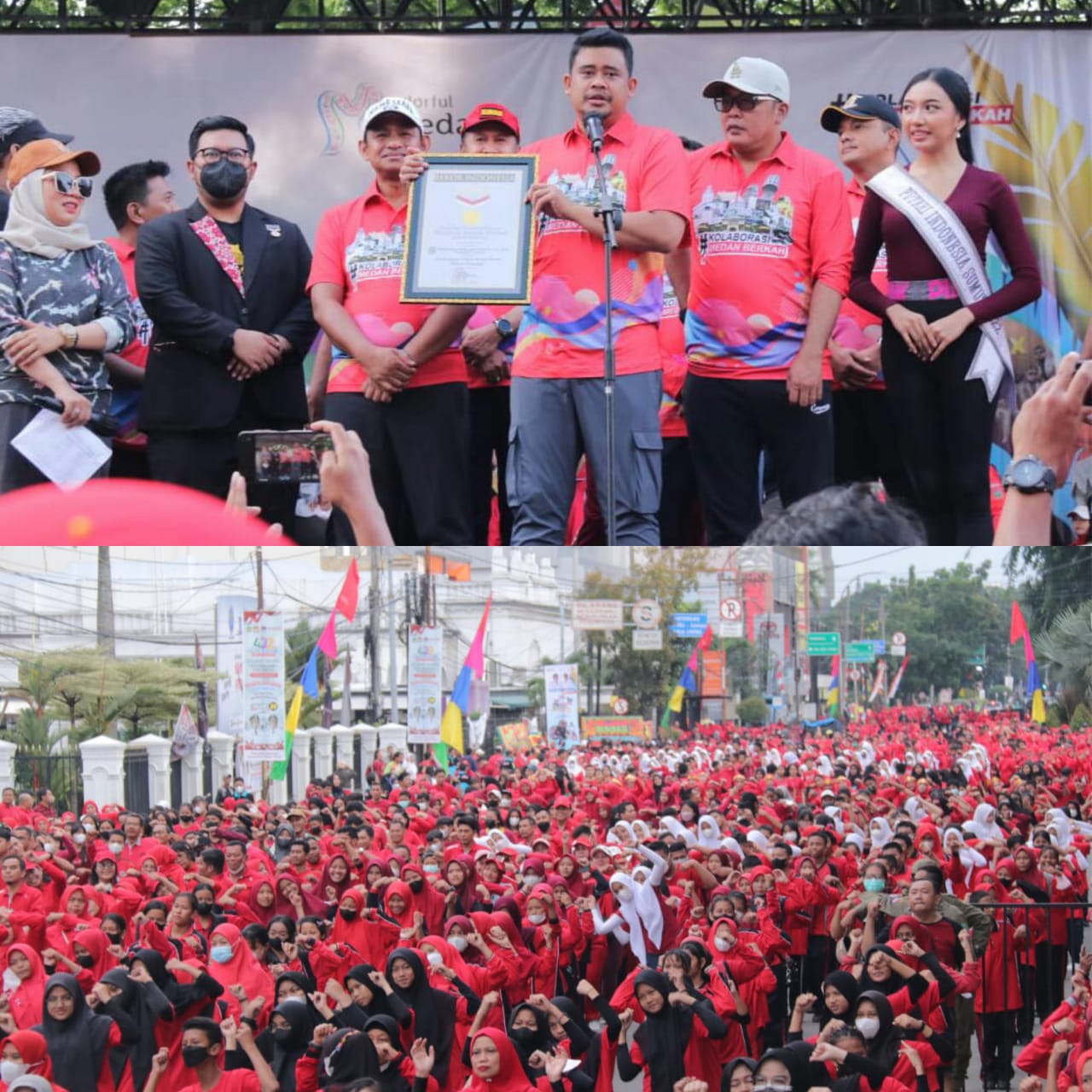 Pemko Medan memecahkan Rekor MURI Senam Kolaborasi (senam diiringi musik daerah) dengan peserta terbanyak mencapai 17.235 orang. Penghargaan dari Musem Rekor Dunia Indonesia diserahkan Customer Relation Manager MURI Andre Purwandono kepada Wali Kota Medan Bobby Nasution usai mengikuti Senam Kolaborasi bersamabelasan ribu masyarakat sebagai rangkaian HUT Kota Medan 432 di Jalan Balai Kota (seputaran Lapangan Merdeka Medan), Sabtu (2/7/2022).