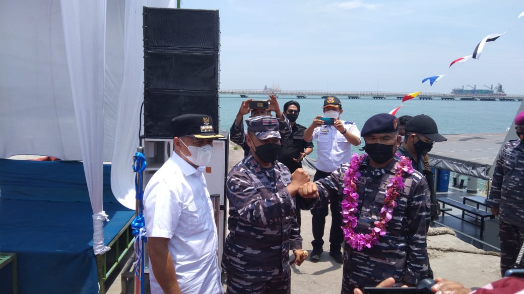 Danlantamal I Laksma TNI Achmad Wibisono menghadiri pengukuhan Kapal Angkatan Laut (kAl) Pandang 1-1-72 di Dermaga C PT Inalum, Selasa (7/9/2021). Kapal Patroli AL panjang 28 meter dengan awak kapal 15 anggota, asli buatan Indonesia akan beroperasi diwilayah Lanal TBA mendapat sambutan hangat dari masyarakat Kabupaten Batu Bara