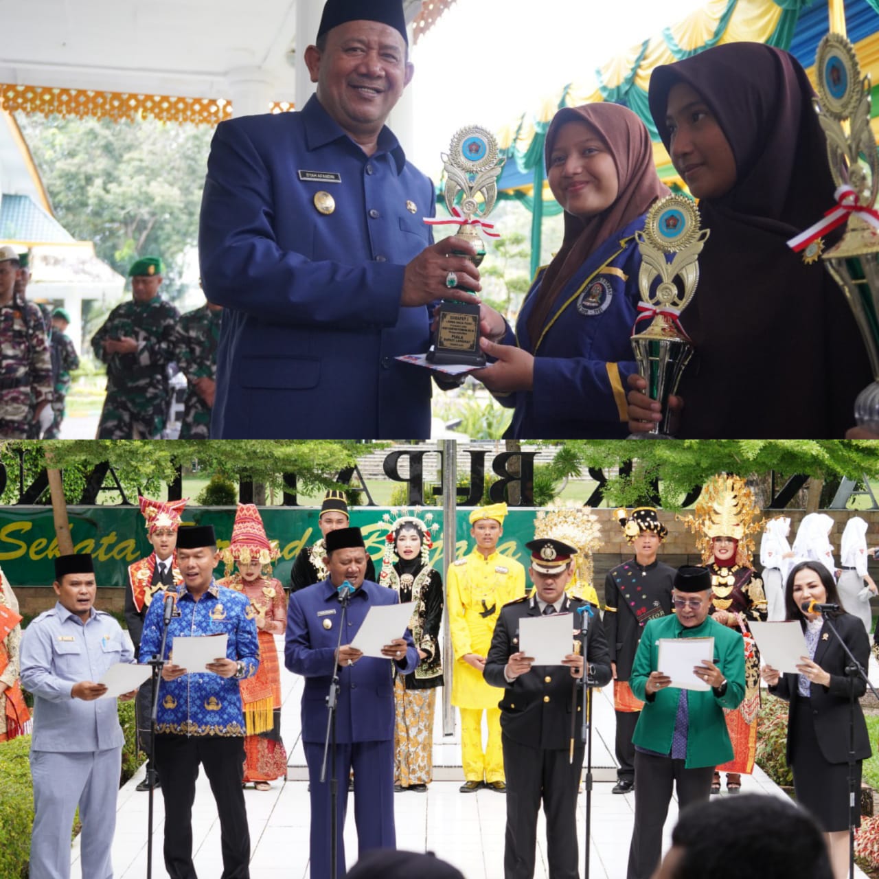Upacara Nasional diawali pengibaran bendera Merah Putih oleh Pelajar dan Purna Paskibraka Kabupaten Langkat serta pemberian penghargaan kepada Pemuda berprestasi.