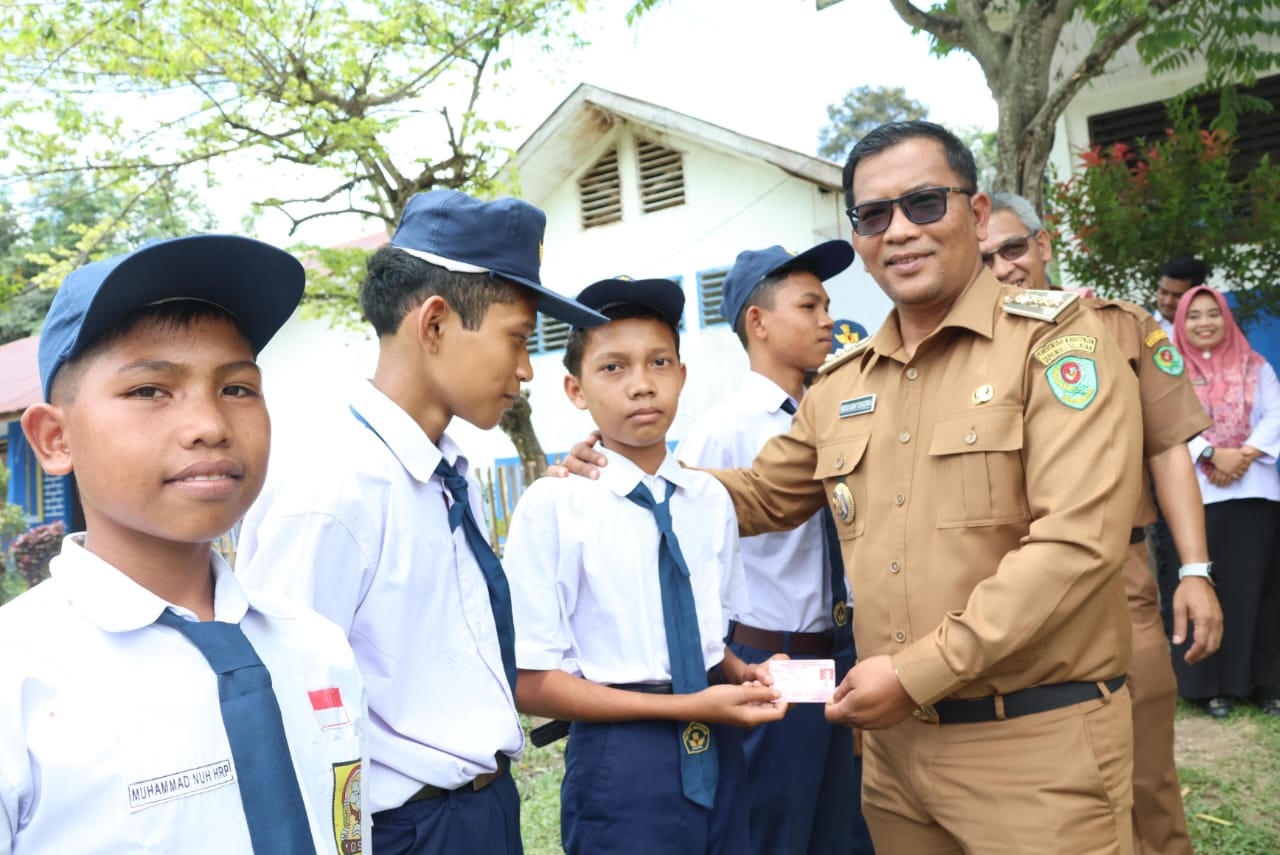 Pelaksana Tugas (Plt) Bupati Tapanuli Selatan (Tapsel) Rasyid Assaf Dongoran membagikan Kartu Identitas Anak (KIA) kepada siswa-siswi SDN 100313 dan SMPN 4 Kelurahan Batang Tura Sirumambe Kecamatan Angkola Timur, Senin (30/09/2024).