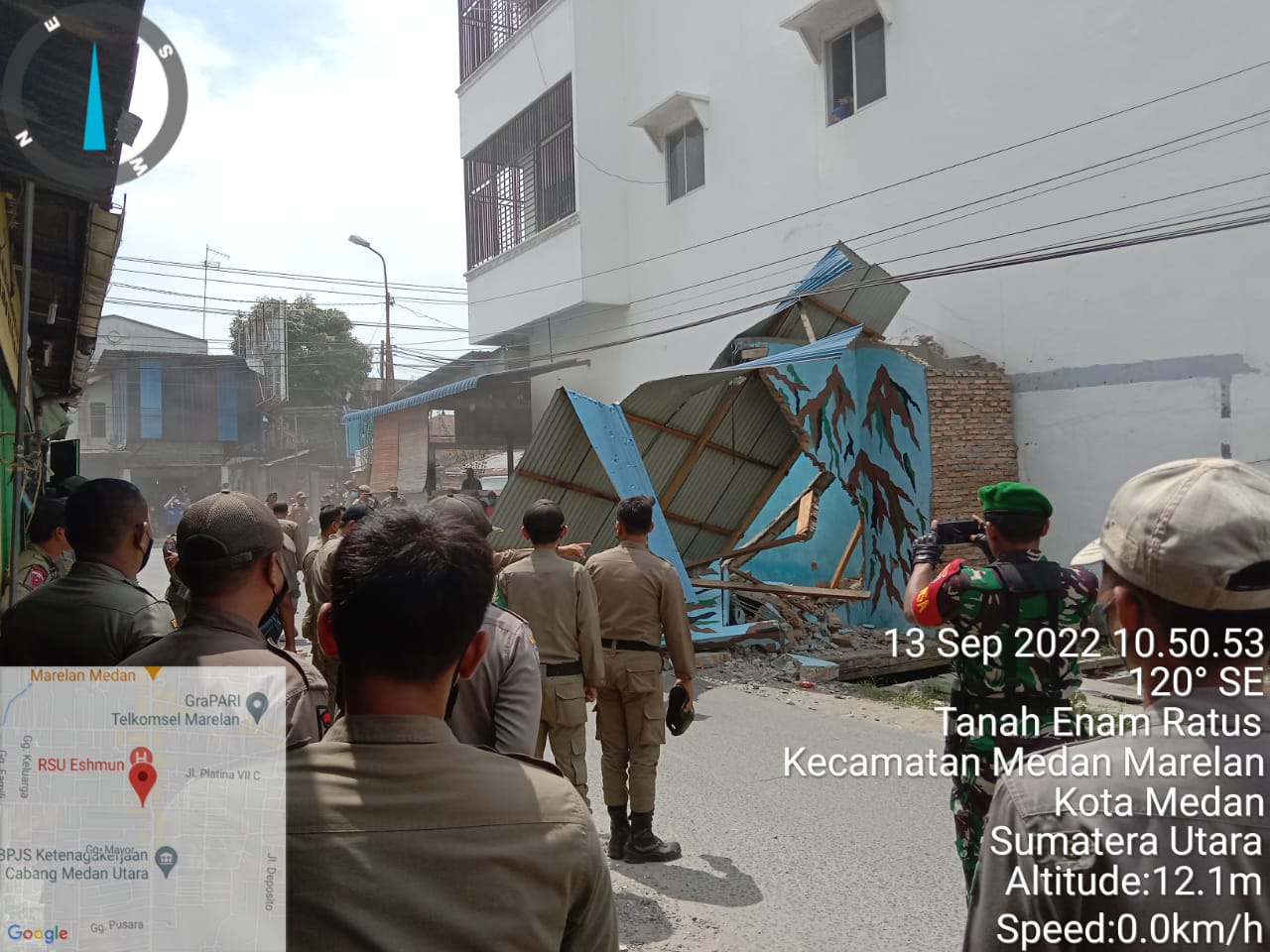Tim Terpadu Pemko Medan terdiri Satpol PP, Kesbangpol, Dishub, Dinas Kesehatan, Dinas Kominfo, Dinas PU, jajaaran Kecamatan Medan Marelan dibantu personil TNI dan Polri merobohkan dua bangunan OKP IPK dan PP dibangun menyalahi aturan.