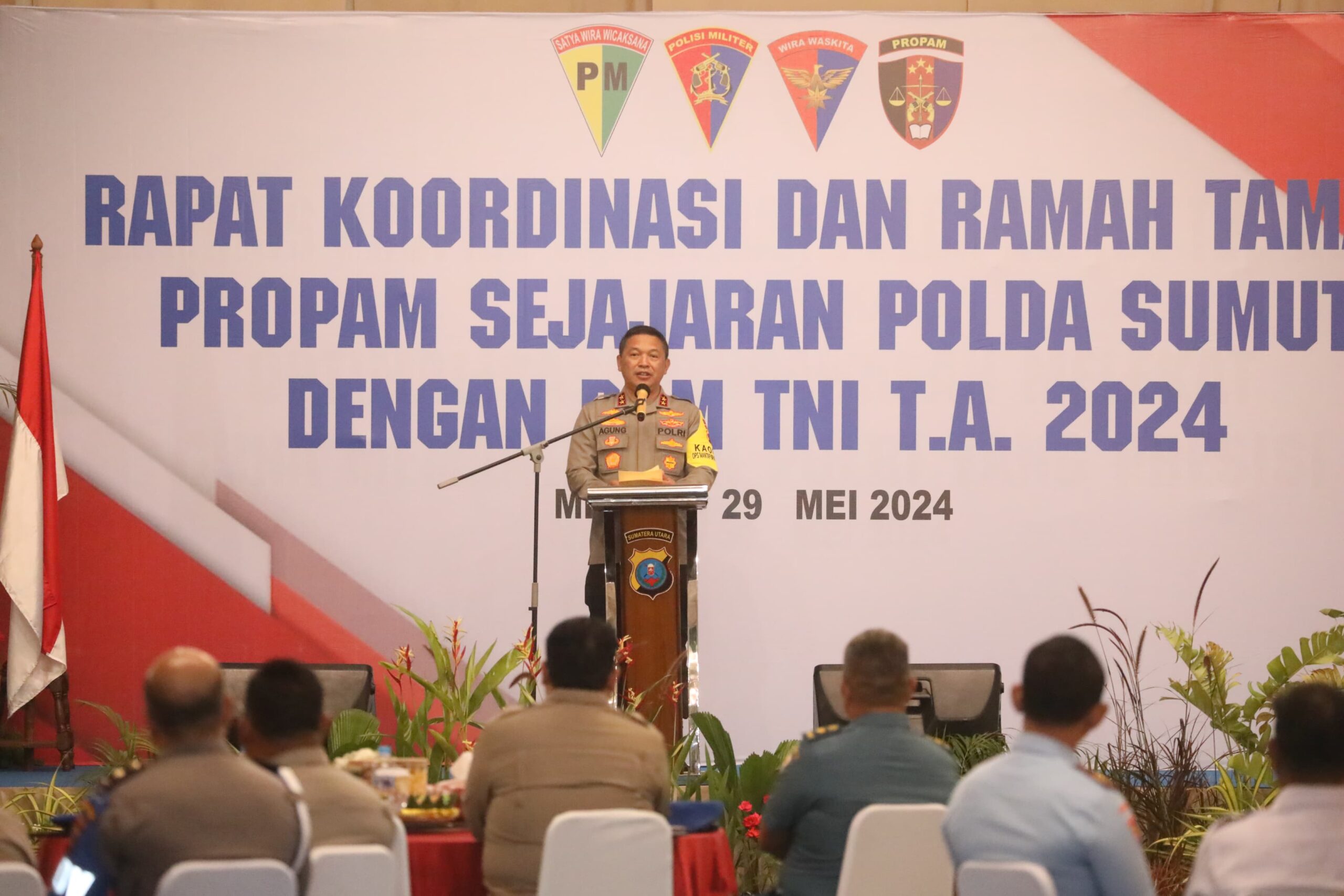 Bidang Propam Polda Sumut menggelar Rapat Koordinasi (Rakor) dengan POM TNI di Medan, Rabu (29/5/2024).