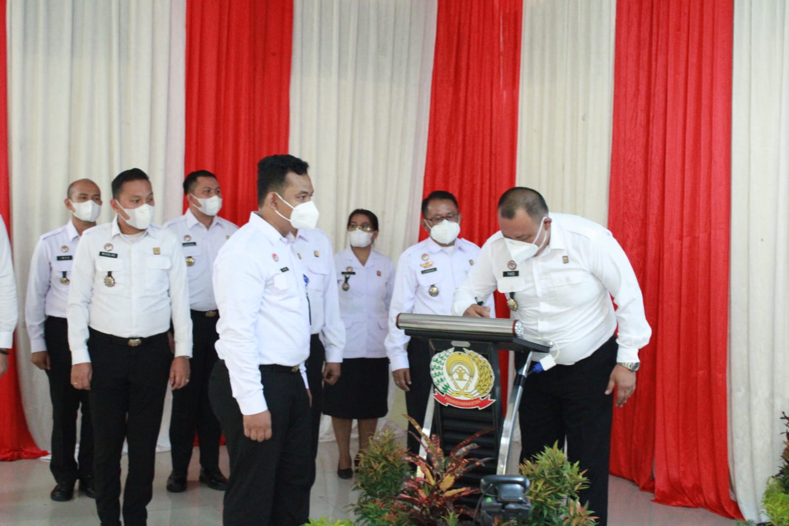 Kepala Rutan Kelas I Medan Theo Adrianus Bersama pejabat struktural mengikuti Apel Deklarasi Unit Pelaksana Teknis (UPT) se-Tanjung Gusta Medan,Kamis (13/1/2022)