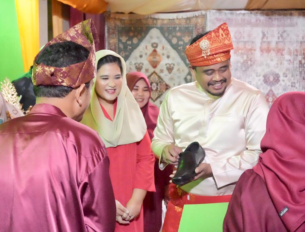Produk UMKM Medan Baru yang dipajang adalah sepatu yang dibeli Bobby sedangkan Kahiyang membeli tas sandang buatan tangan bermotif etnik.