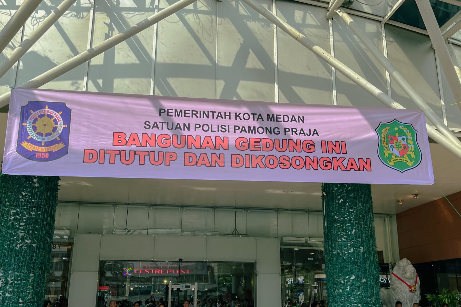 Spanduk penutupan Mall Centre Point.(Foto : Kominfomdn)