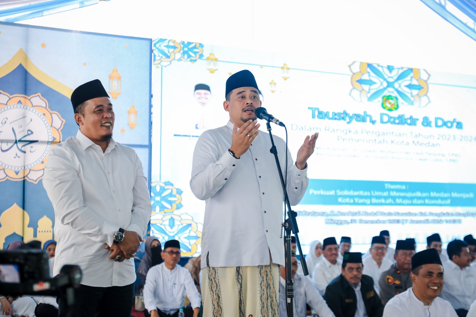 Tausiyah, Zikir dan Doa digelar di Kota Medan menyambut Tahun Baru 2024 di Lapangan Sejati Kelurahan Pangkalan Mansyur Kecamatan Medan Johor, Minggu (31/12/2023).