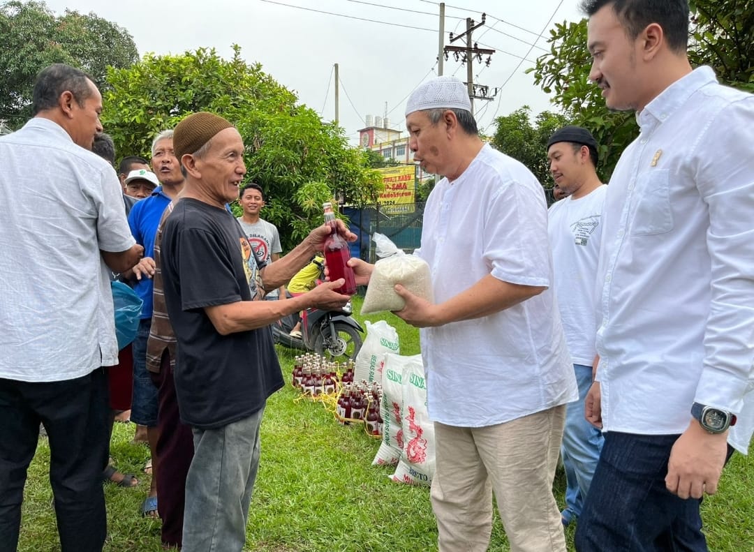 Syaf Lubis bersama istri Hj.Warsih Ningsih, ketiga putra putrinya M. Afri Rizki Lubis, S.M, M.IP, drg Nicky Sefanny Lubis dan M.Safiqki Juanda Lubis S.Sos membagikan berkah Ramadhan berupa1000 paket bingkisan Lebaran berisi sembako kepada masyarakat sekitar.