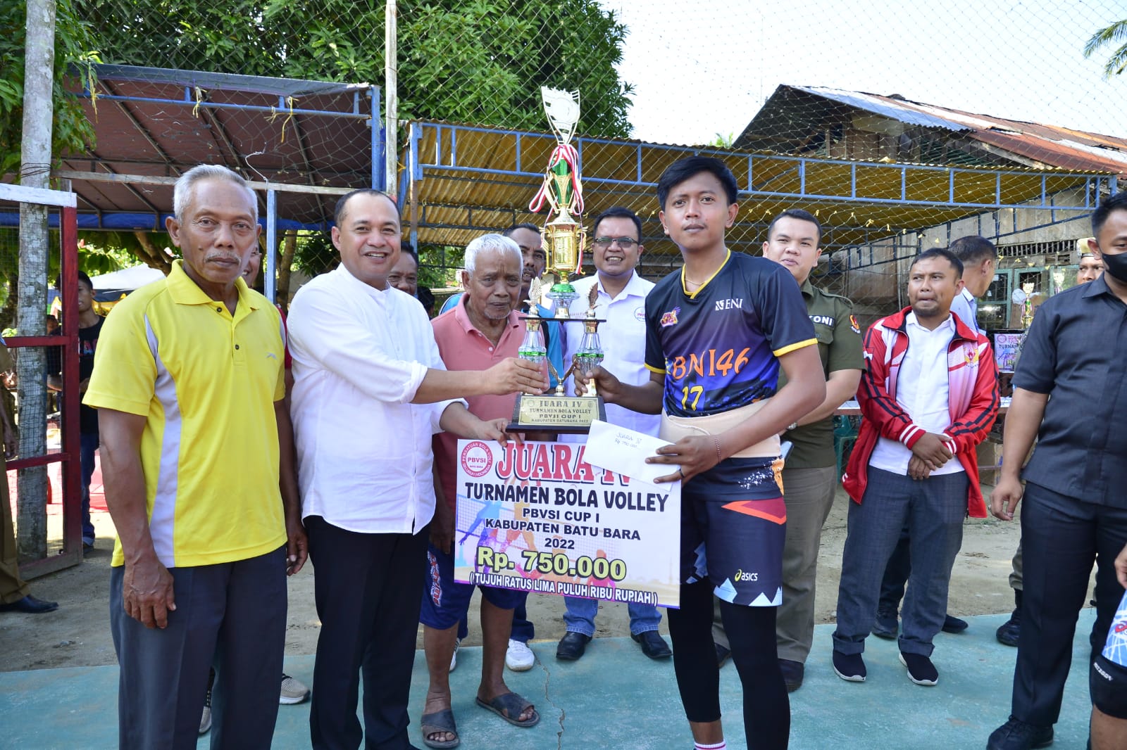 Bupati Batu Bara Zahir menutup turnamen Bola Voli piala PBVSI Kabupaten Batu Bara di Lapangan Palapa VC Sukaramai Kecamatan Sei Balai, Senin (28/11/2022).