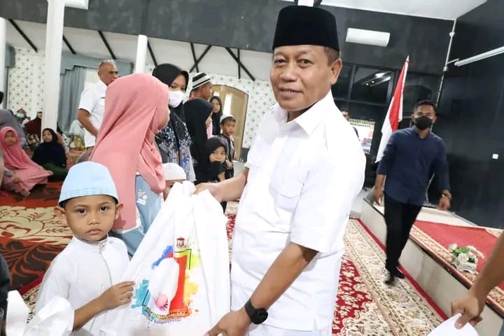 Wali Kota Tanjungbalai H.Waris Tholib menyerahkan santunan kepada 222 orang anak yatim di Pendopo Rumah Dinas Wali Kota ,Rabu (29/03/2023).