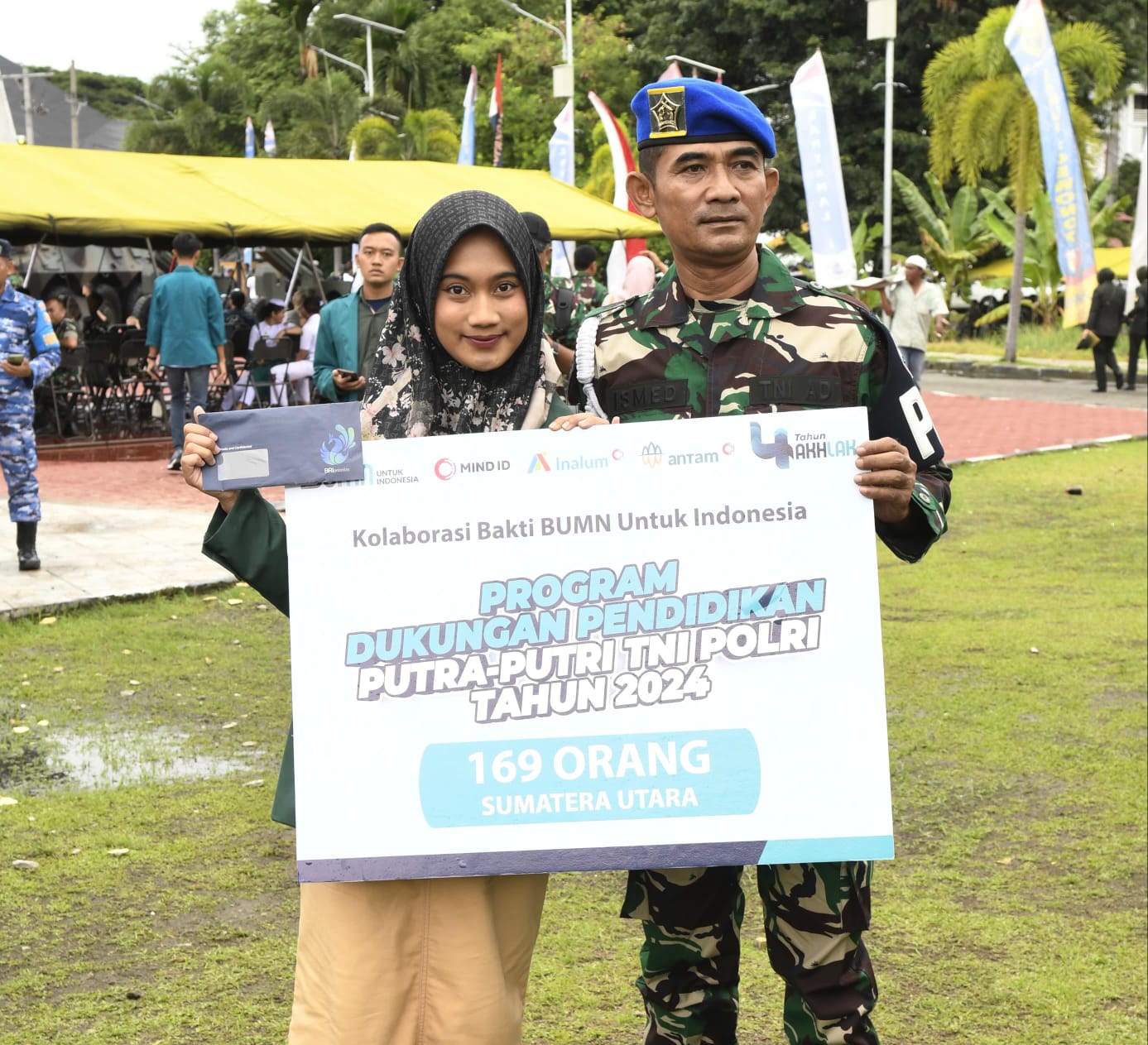 PT INALUM bersama dengan holding pertambangan PT Mind ID (Persero) dan PT Antam Tbk menyerahkan beasiswa pendidikan kepada 169 putra-putri TNI-Polri yang berprestasi di wilayah Sumut.