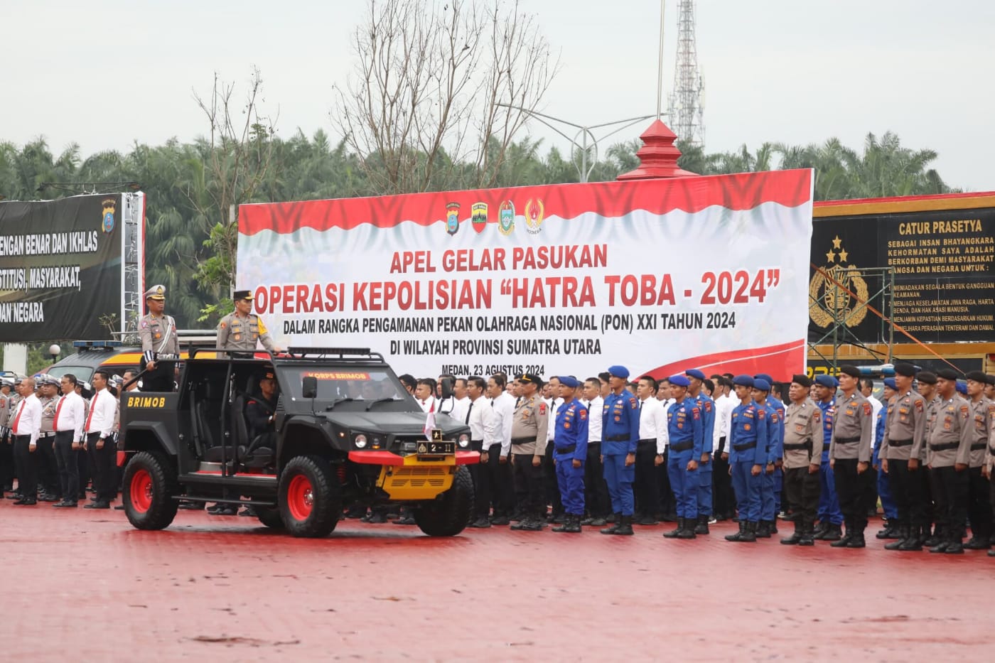 “Kami (Poldasu) siap mengamankan semuanya (PON), karena memang ini menjadi tugas pokok kami,” tegas Wakapolda Sumut Brigjen Pol Rony Samtana saat Apel Gelar Pasukan Operasi Kepolisian Harimau Sumatera (Harta) Toba 2024, di Medan, Jumat (23/08/2024).