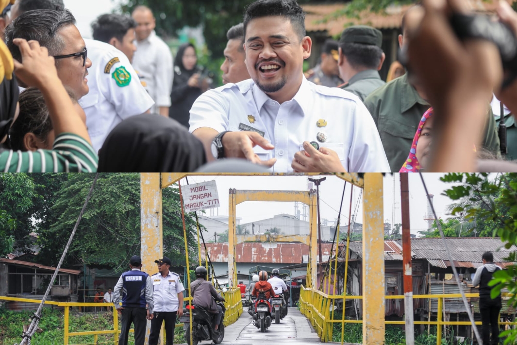 Wali Kota Medan Bobby Nasution, Rabu (26/6/24) turun ke lokasi melihat kondisi jembatan yang sudah puluhan tahun tidak pernah direnovasi.