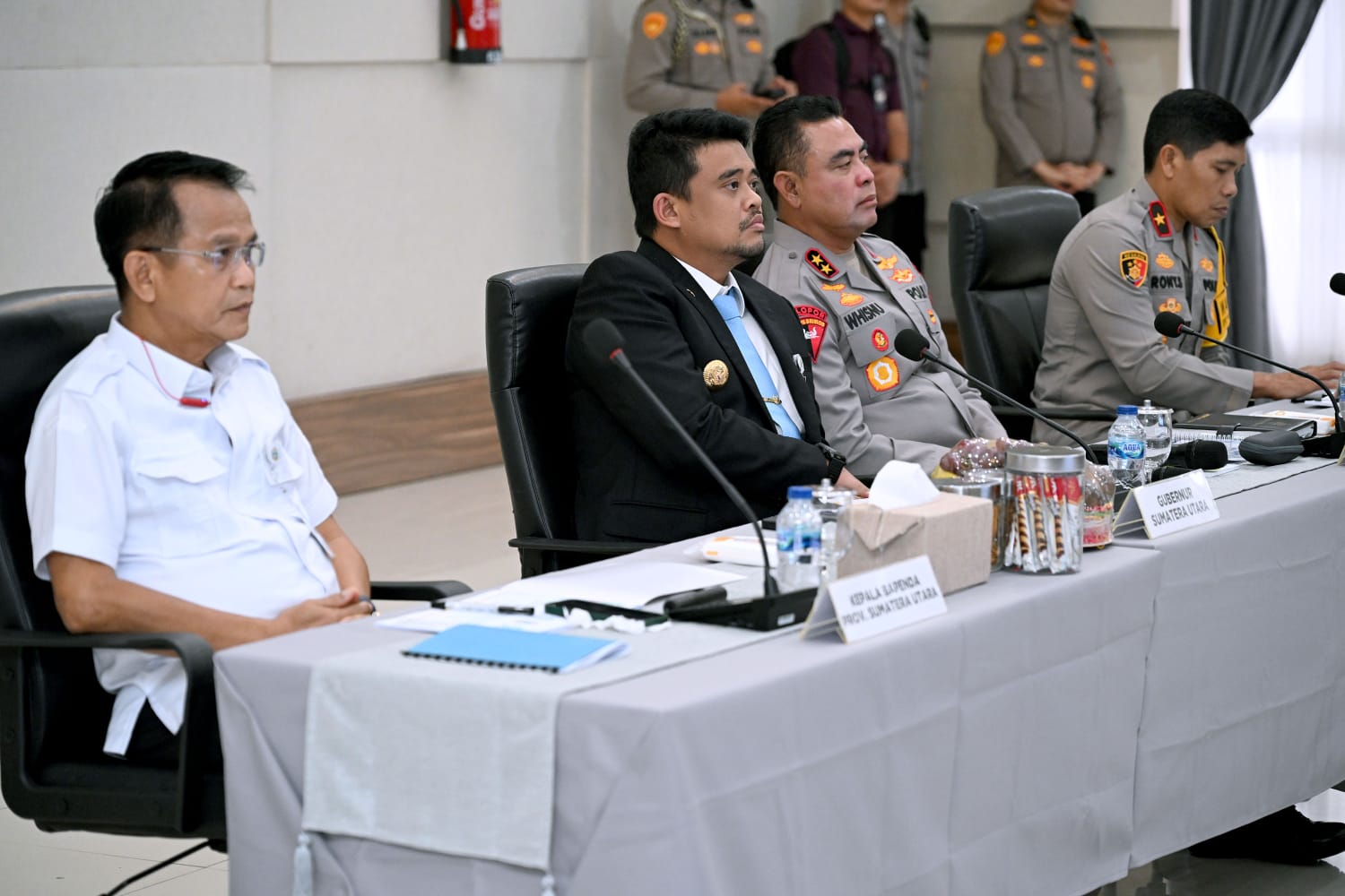 Gubernur Sumut Bobby Nasution menyaksikan peluncurkan logo dan tema HUT Ke-80 Republik Indonesia digelar secara zoom meeting di Aula Kantor Bapenda Provinsi Sumut, Jalan SM Raja Medan, Rabu (23/7/2025).